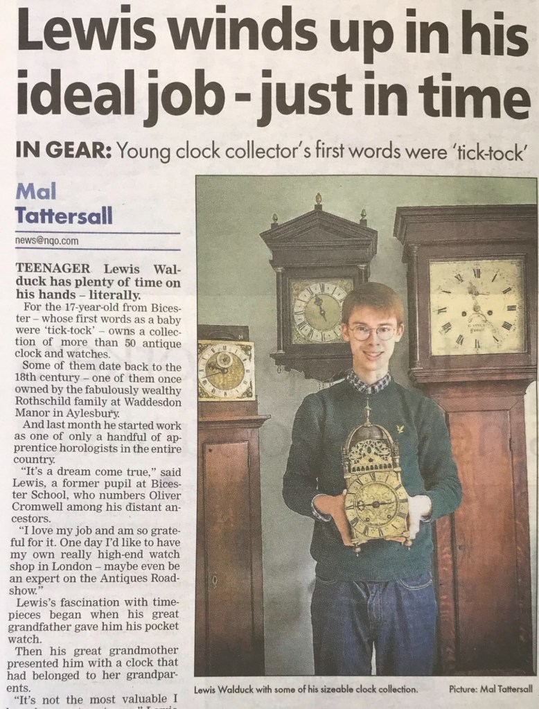 For as long as I can remember I have always been drawn to the stories that clocks and antiques tell us about the past. Born in Oxford and raised in North Oxfordshire, I’ve spent most of my life surrounded by history, and it’s been a privilege to follow my passion for horology, which began at a very young age. In fact, I’ve heard that the first words I ever spoke were “tick tock,” which, in hindsight, seems to have been a sign of things to come.